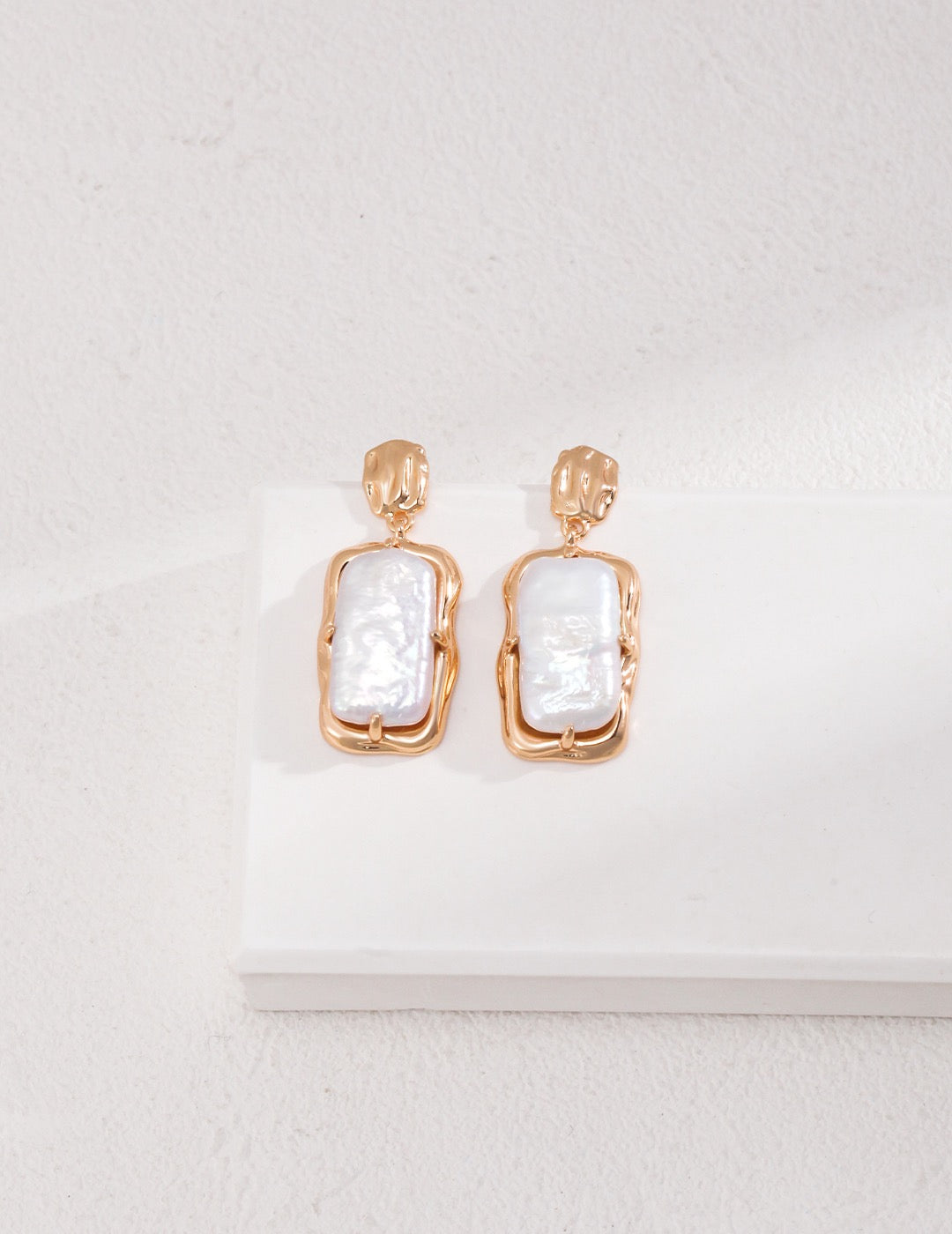 18K Gold / White Gold 925 Sterling Silver Natural Pearl Drop Earrings