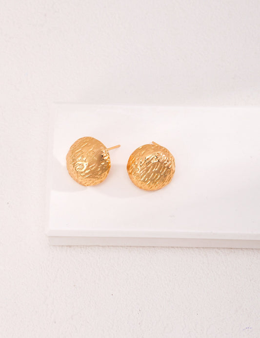 Hammered Gold Disc Stud Earrings | 925 Sterling Silver with 18K Gold Plating