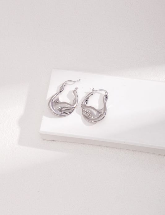 Organic Fluid Hoop Earrings | 925 Sterling Silver | 18K Gold & 18K White Gold Plating