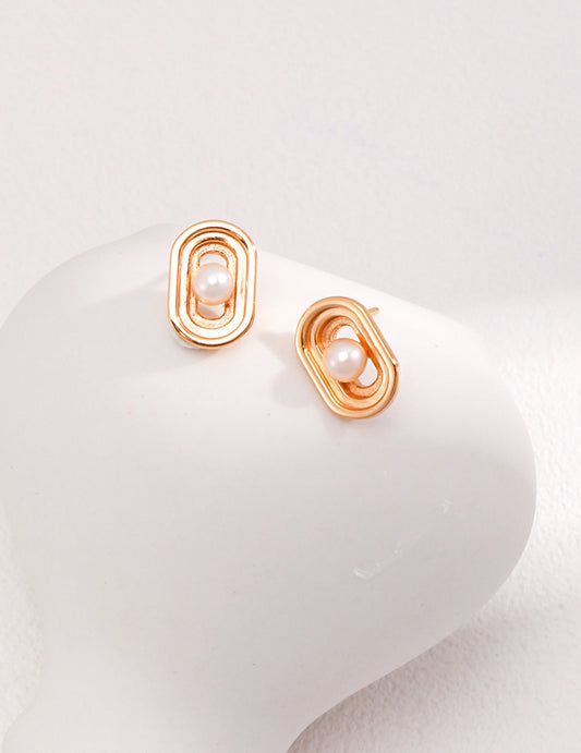 Geometric Pearl Stud Earring | 18K Gold & 18K White Gold 925 Silver Jewelry