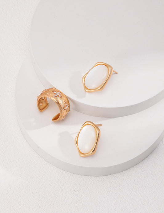 Pure Silver Minimalist Mother of Pearl Earrings