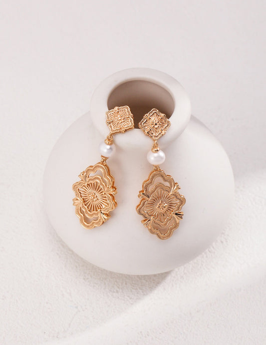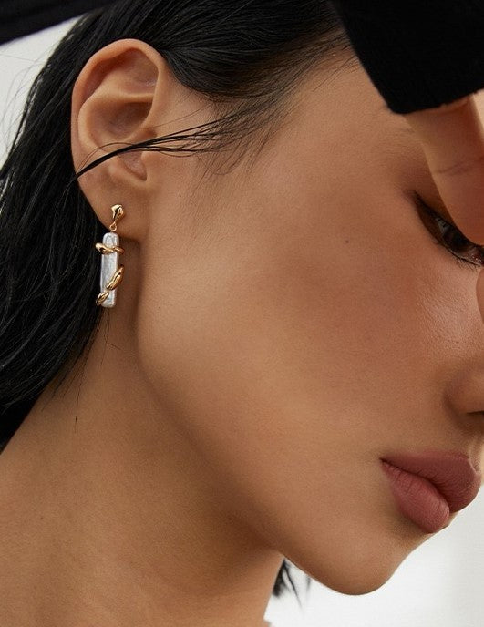 18K Gold / White Gold 925 Sterling Silver Natural Pearl Drop Earrings