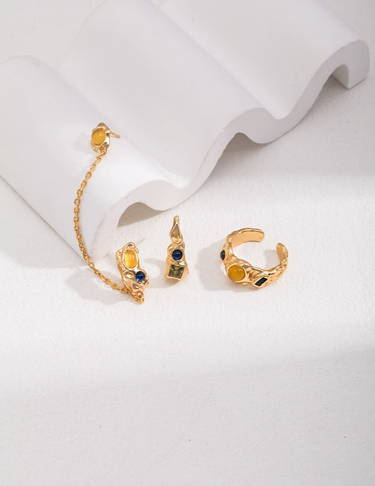 • Sterling-Silberring mit eingelegten bunten Edelsteinen der antiken Serie