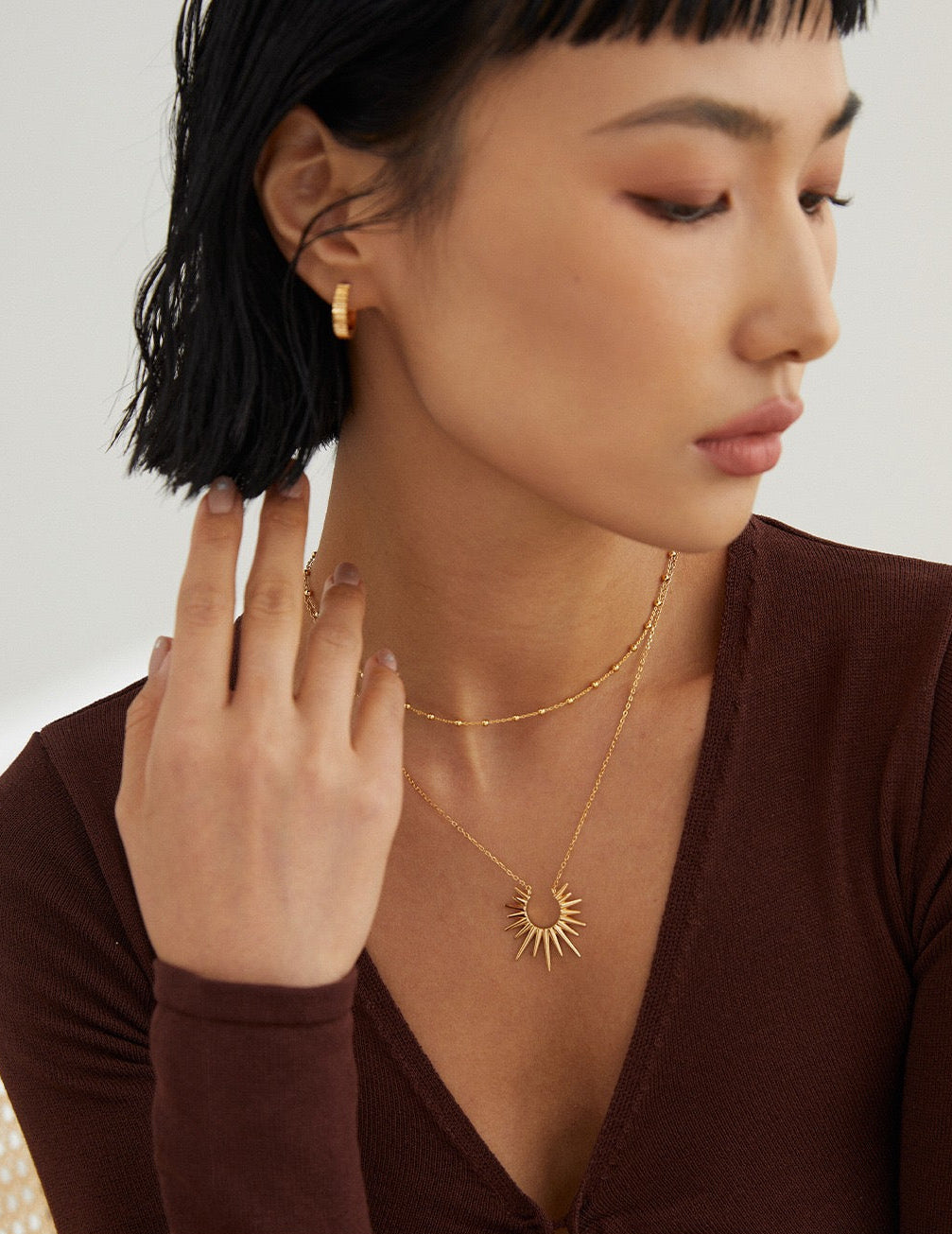 • Layering with other dainty necklaces