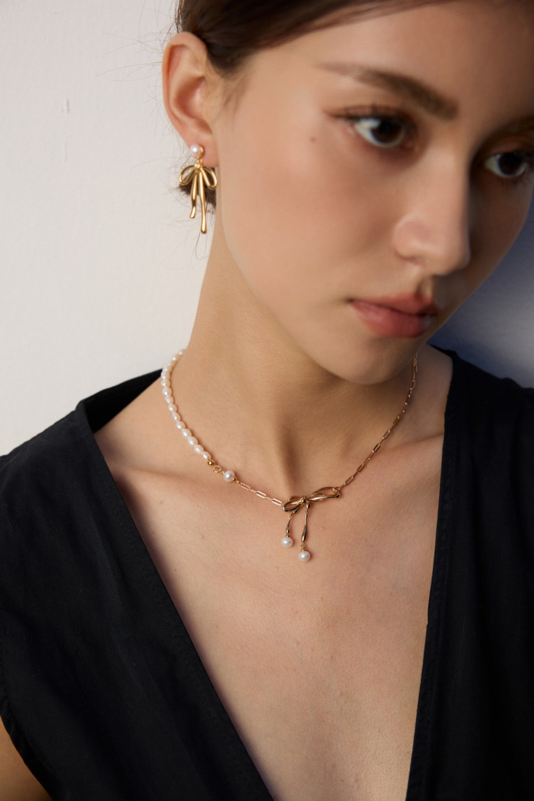 Bow Pearl Necklace – 18K Gold & 18K White Gold Plated 925 Silver with Natural Pearls